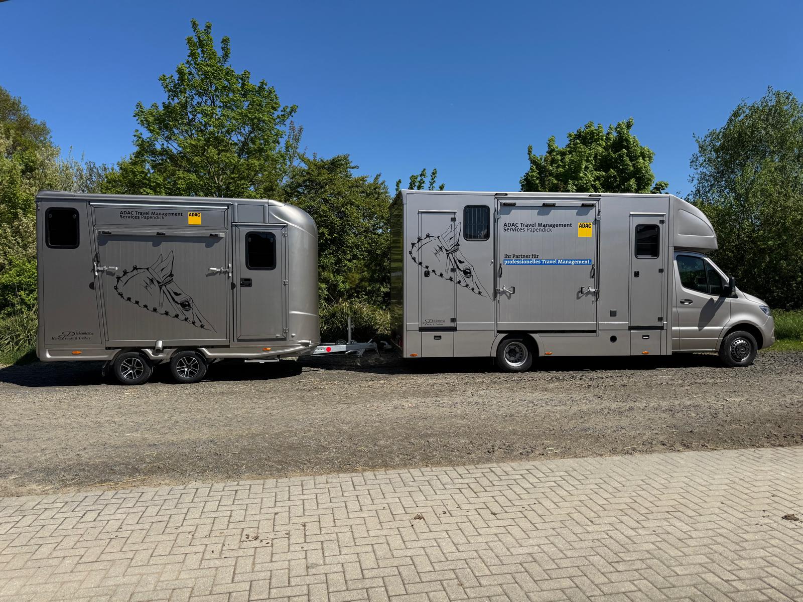 Beide Fahrzeuge sind optimal auf Pferdetransporte ausgelegt und werden regelmäßig gewartet. Ihr Pferd reist sicher, komfortabel und stressfrei.